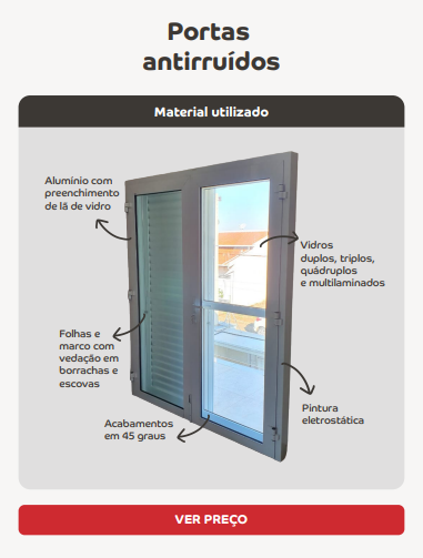 Portas com perfil de alumínio com lã de vidro e vidro duplos, triplos, quádruplos ou multilaminados.